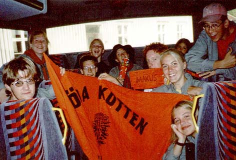 Vi samlades på Lendahls-skolans skolgård för avfärd och vi sitter