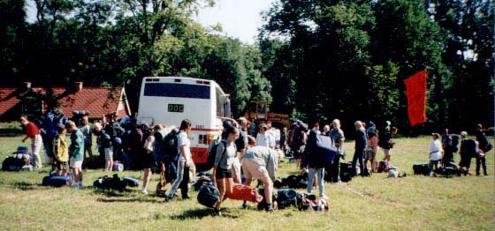 Äntligen framme! Och vi packar ut vår packning ur bussen.