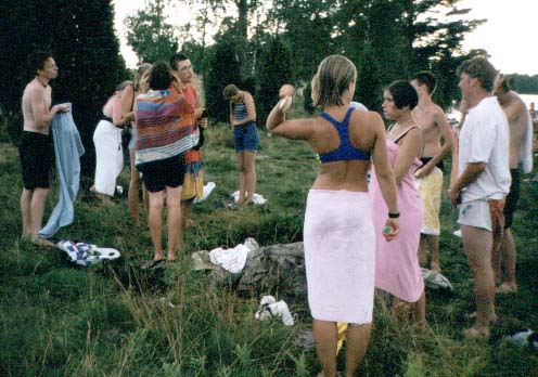 ALLA är på lägret är samlade till ett hejdundrande invignings lägerbål.