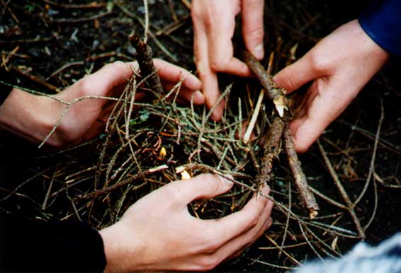 Den ena gruppen skulle bygga ett lägerkök medan den