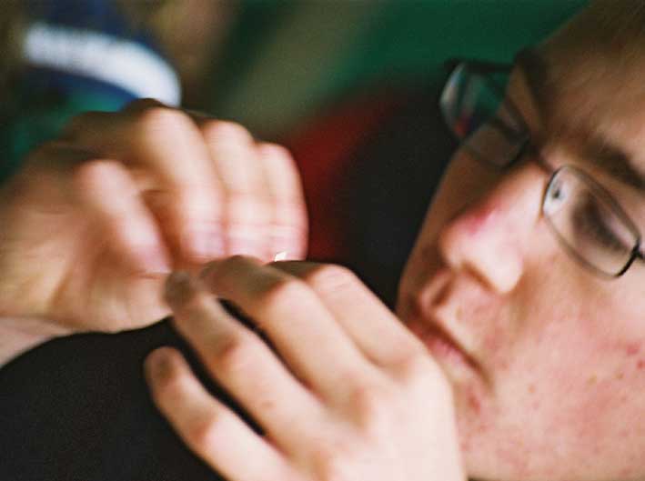 Fredrik koncentrerar sig djupt i sin eldpåse...