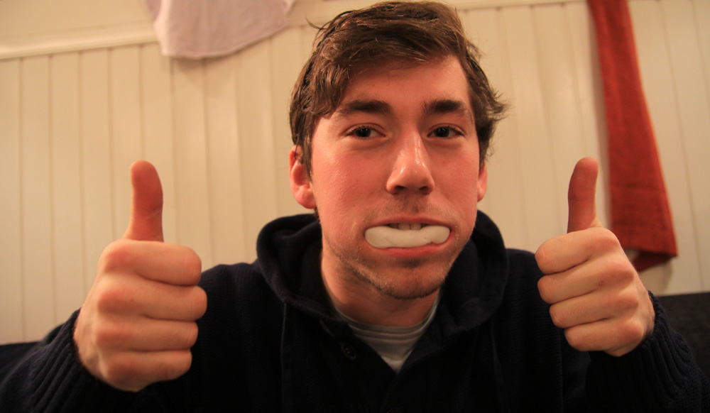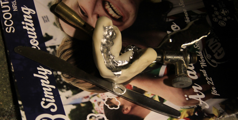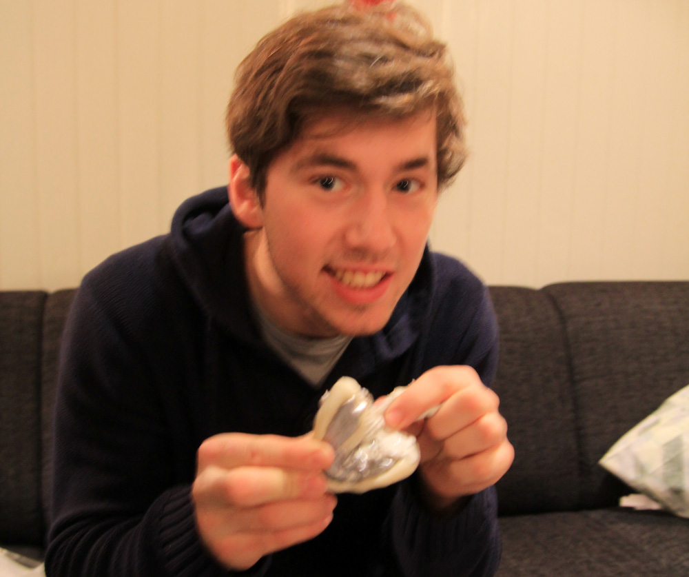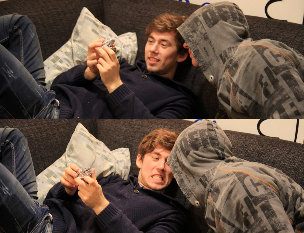 Daniel lämnar rummet i ca 5 min för att hämta något och då passar Adam på att få smält tenn på sig :(