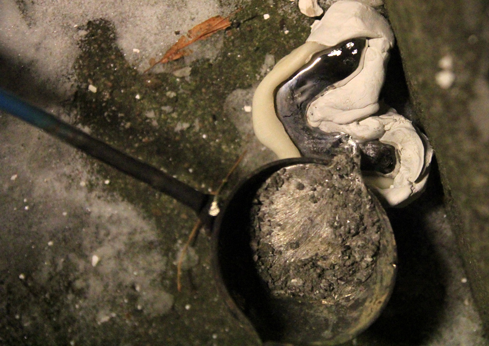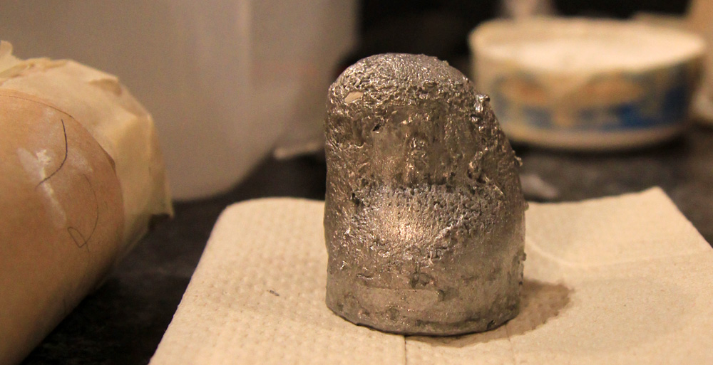 Vi gjut Marcus stortå men formen var tyvärr inte helt bra så tån gick till återvinning...