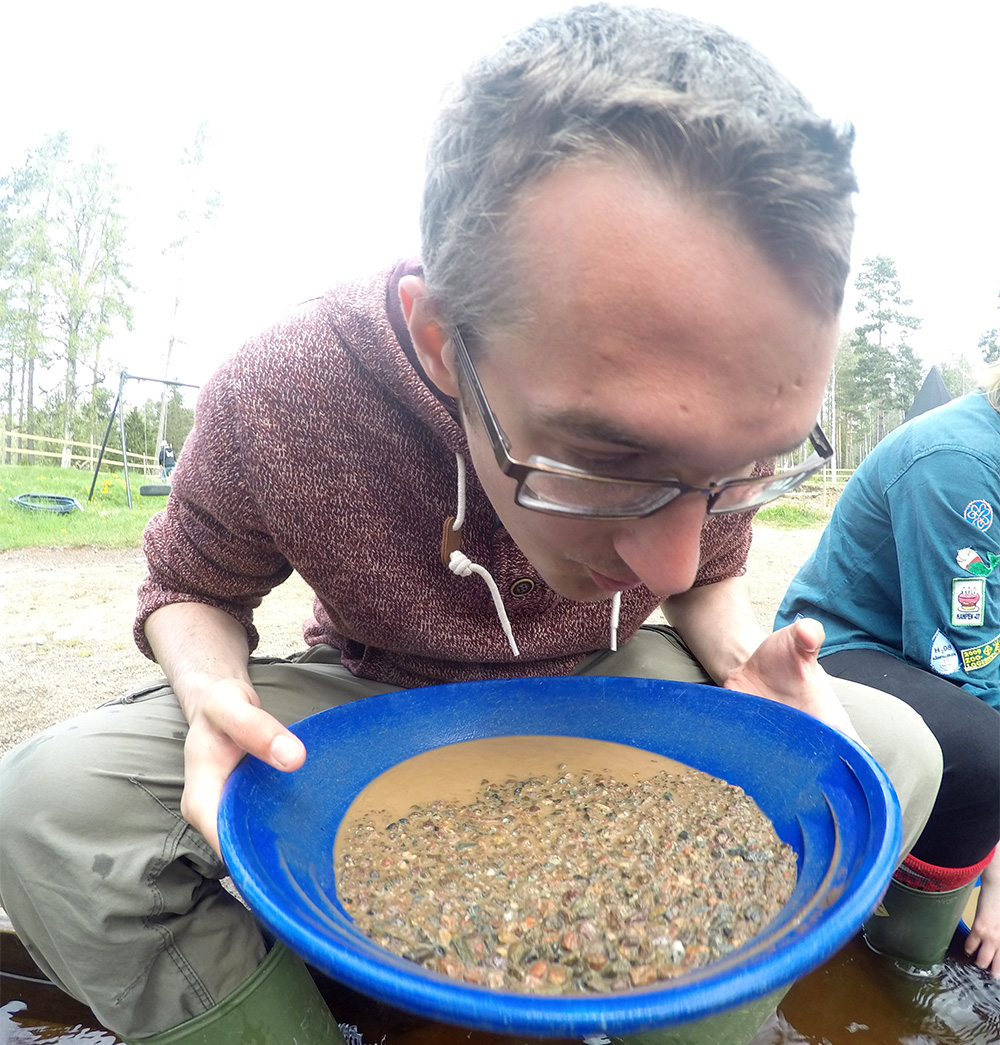 Klockan 17 stängde vaskningen och det startade en tävling i mineralletning
