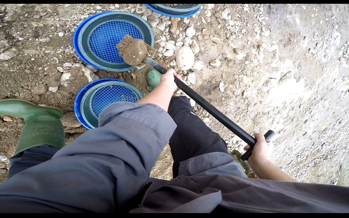 Sedan grovvaska borta större stenar i det verkligen iskalla vattnet