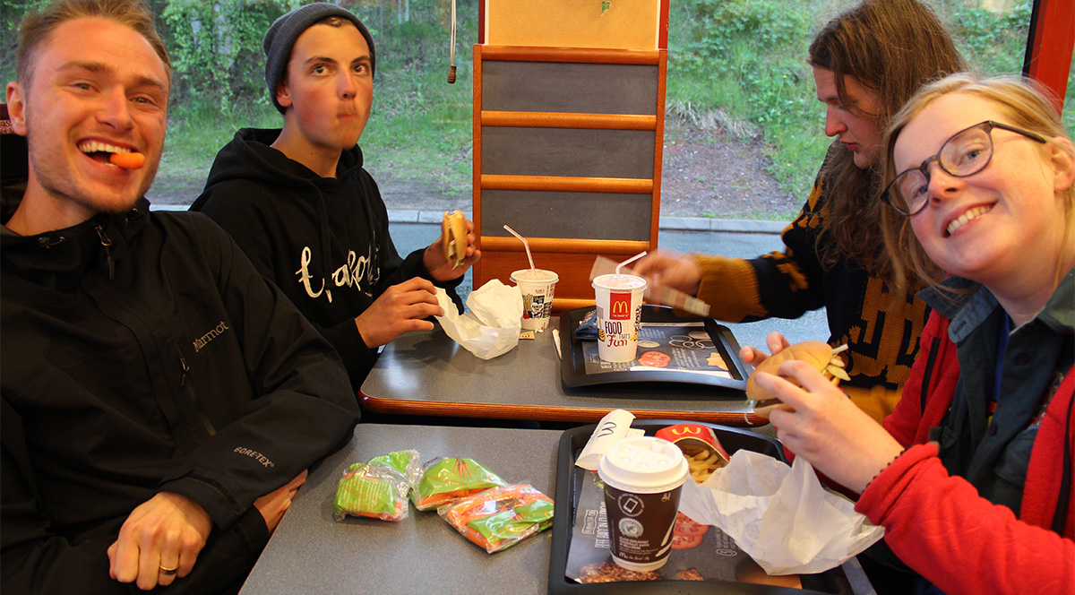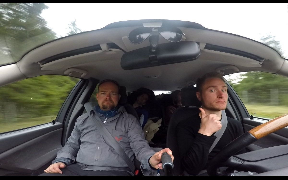 David släpper ut gas i bilen och vi andra kippar efter firsk luft