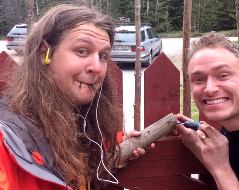 Sebastian och Jonatan firade detta med att bära på sten :)